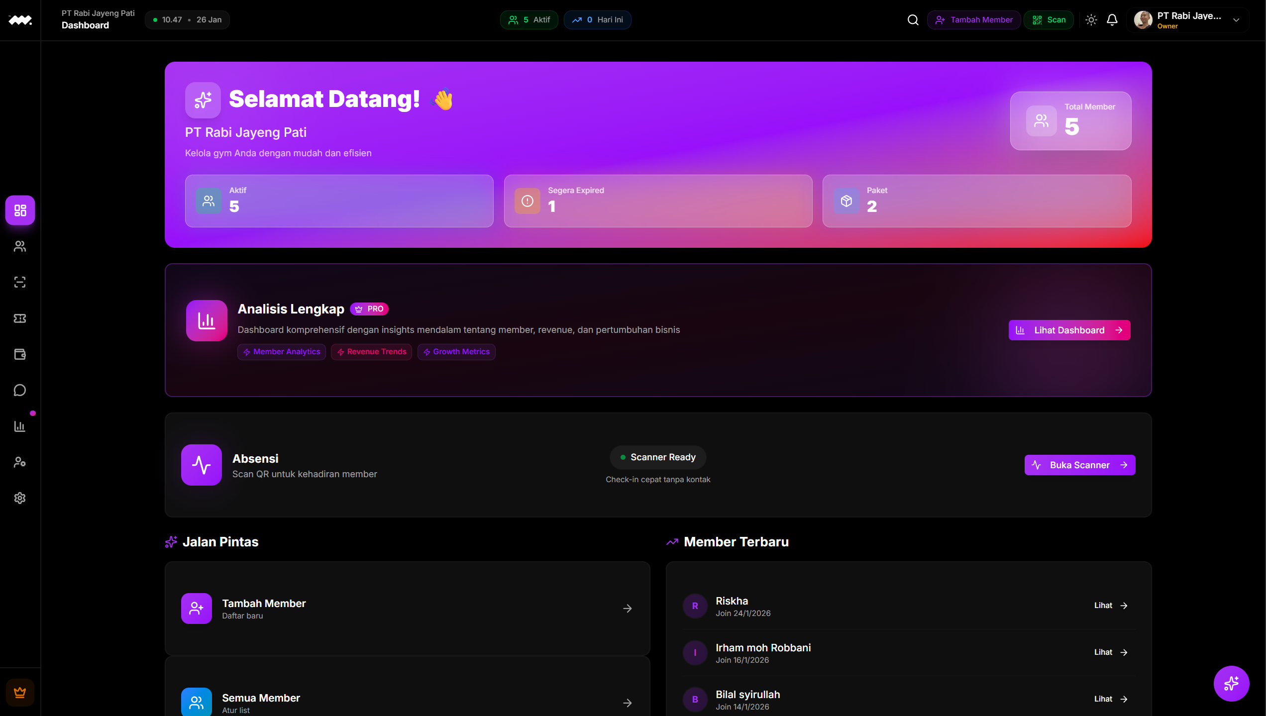 Member siap check-in, pantau dashboard & add member baru